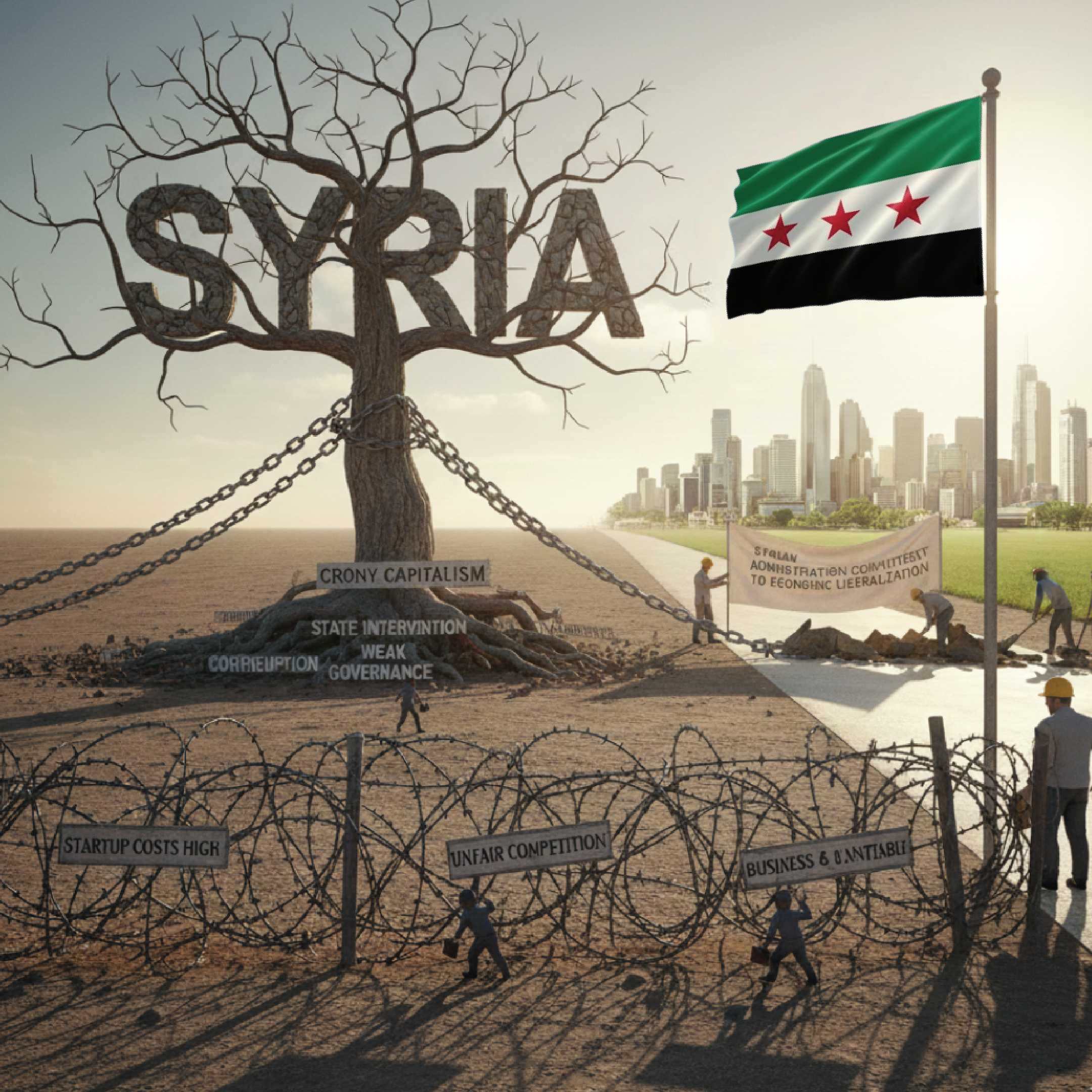 وعلى الرغم من أن التركيز ينصب غالب اً على العقوبات الغربية بوصفها أحد أبرز العوامل المعيقة لنمو قطاع الأعمال في سوريا، إلا أن الأثر السلبي لرأسمالية المحاسيب على بيئة الأعمال كثير اً ما يُغفَل عنه، وذلك من خلال زيادة تكاليف تأسيس المشاريع وعرقلة المنافسة العادلة بفضل ما تحظى به من امتيازات، بحيث يصبح العمل في ظلها محفوف اً بالمخاطر وغير مجدٍ في كثير من الأحيان.
